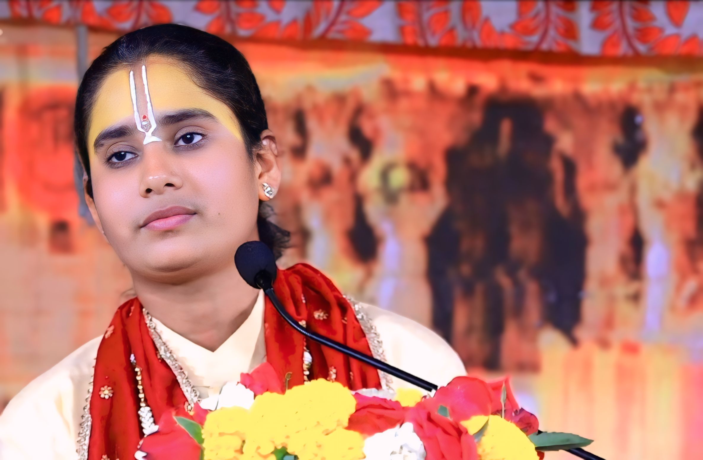 भव्य एवं दिव्य श्रीराम कथा में पूजनीय देवी जी को पुष्प गुच्छ भेंट कर स्वागत करते सहकारिता मंत्री राजस्थान सरकार श्री गौतम कुमार दक जी